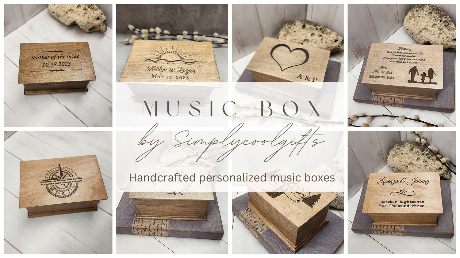 The music box is absolutely gorgeous and exactly as described!! I love the font of the bottom engraving. The seller responded quickly and sent the box earlier than I expected in nice packaging. It was also great that she provided YouTube links to hear the music box versions of songs because it helped me make a decision. Can’t wait to give this unique gift!