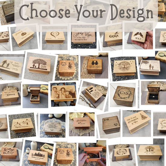 Choose between our handcrafted jewelry boxes or ring boxes. -