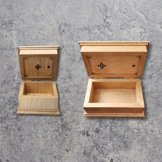 Your song is converted into a classic music box sound when the lid is opened. Ideal for anniversaries, weddings, and meaningful keepsakes where both music and storage matter.Available in small and large sizes.