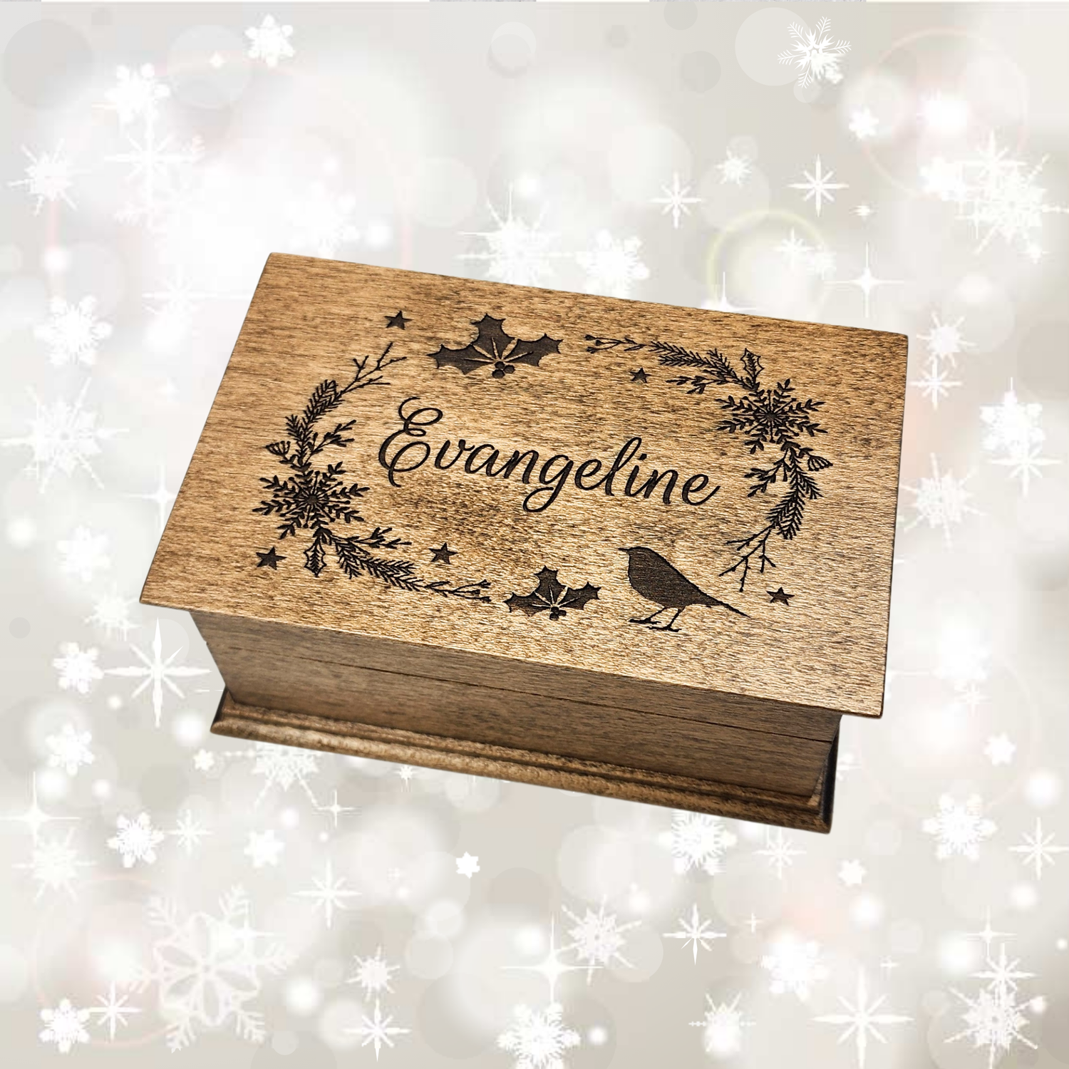 Unlike mass-produced holiday gifts, this engraved music box is crafted with care in our small Florida workshop. Let the gentle melody, filling the home with the warmth and nostalgia of Christmas.