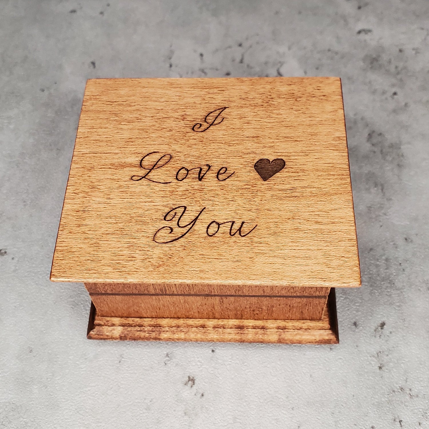 I Love You Music box with heart engraved on top, choose color and song, personalize