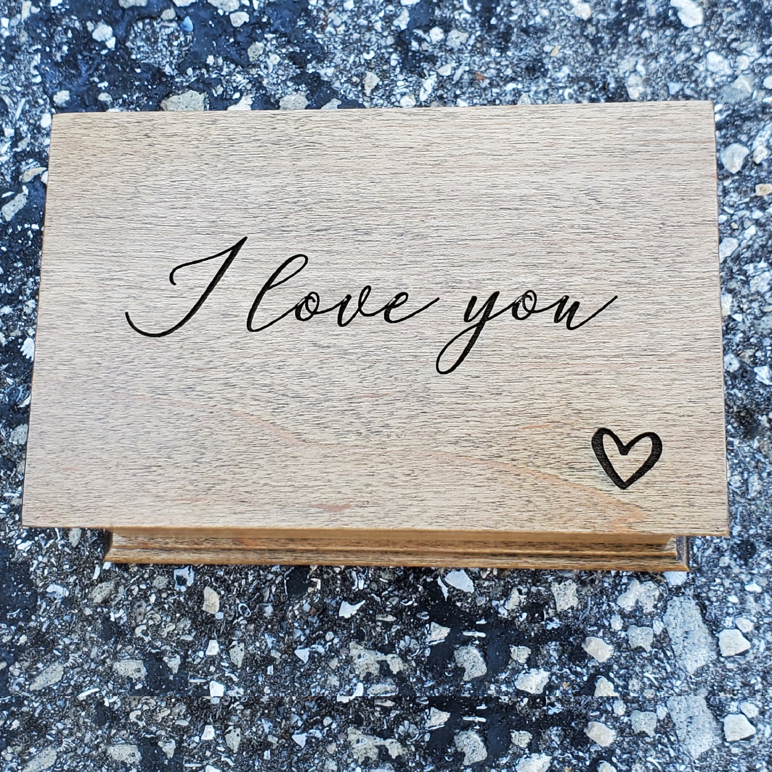 Jewelry Box Custom Song Music with I love you engraved on top, choose color and song