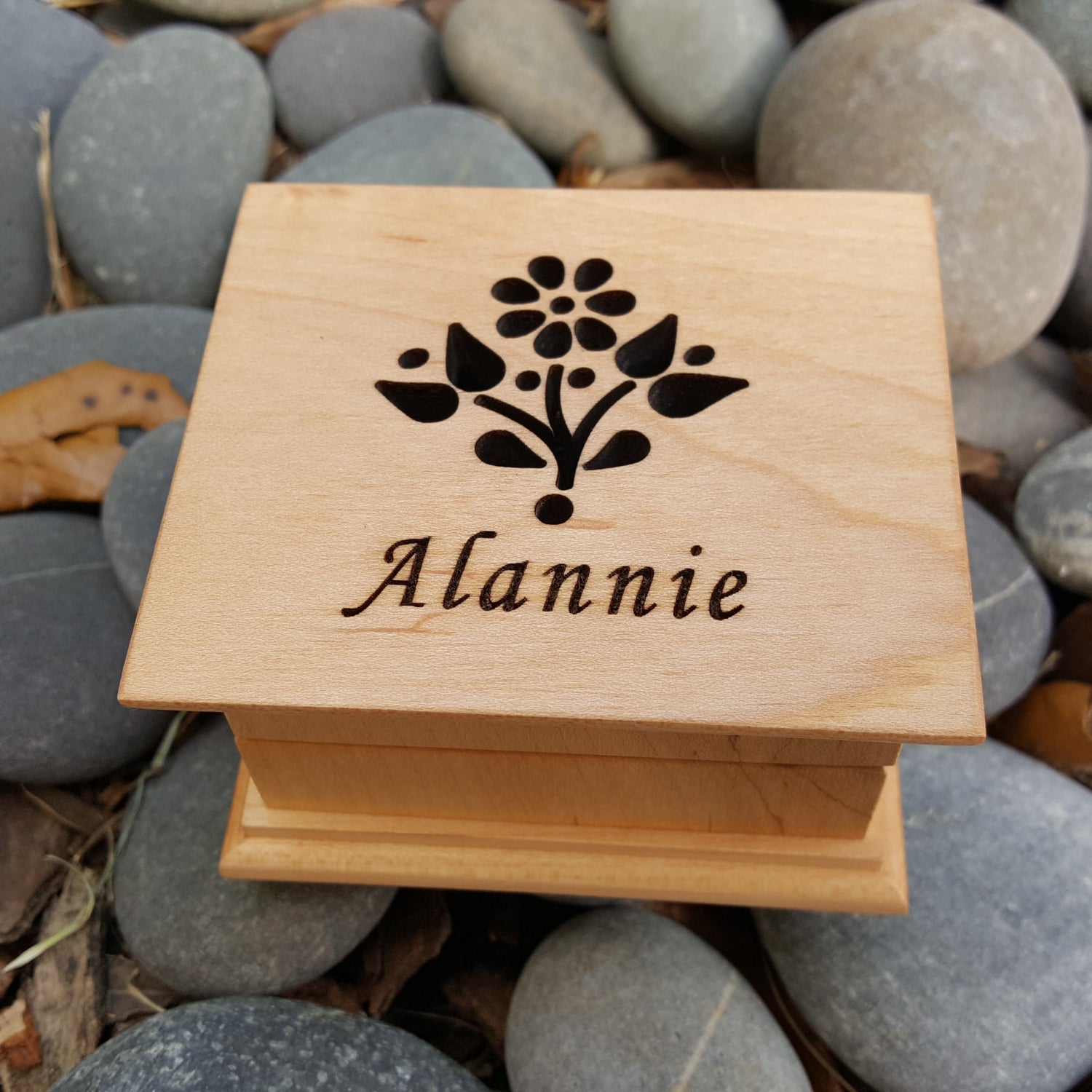 This listing includes 1 wooden music box made of high quality USA maple wood, with a flower image engraved to the top with your choice of color and song (from the list below)! Any further ideas, please contact me prior to purchase!