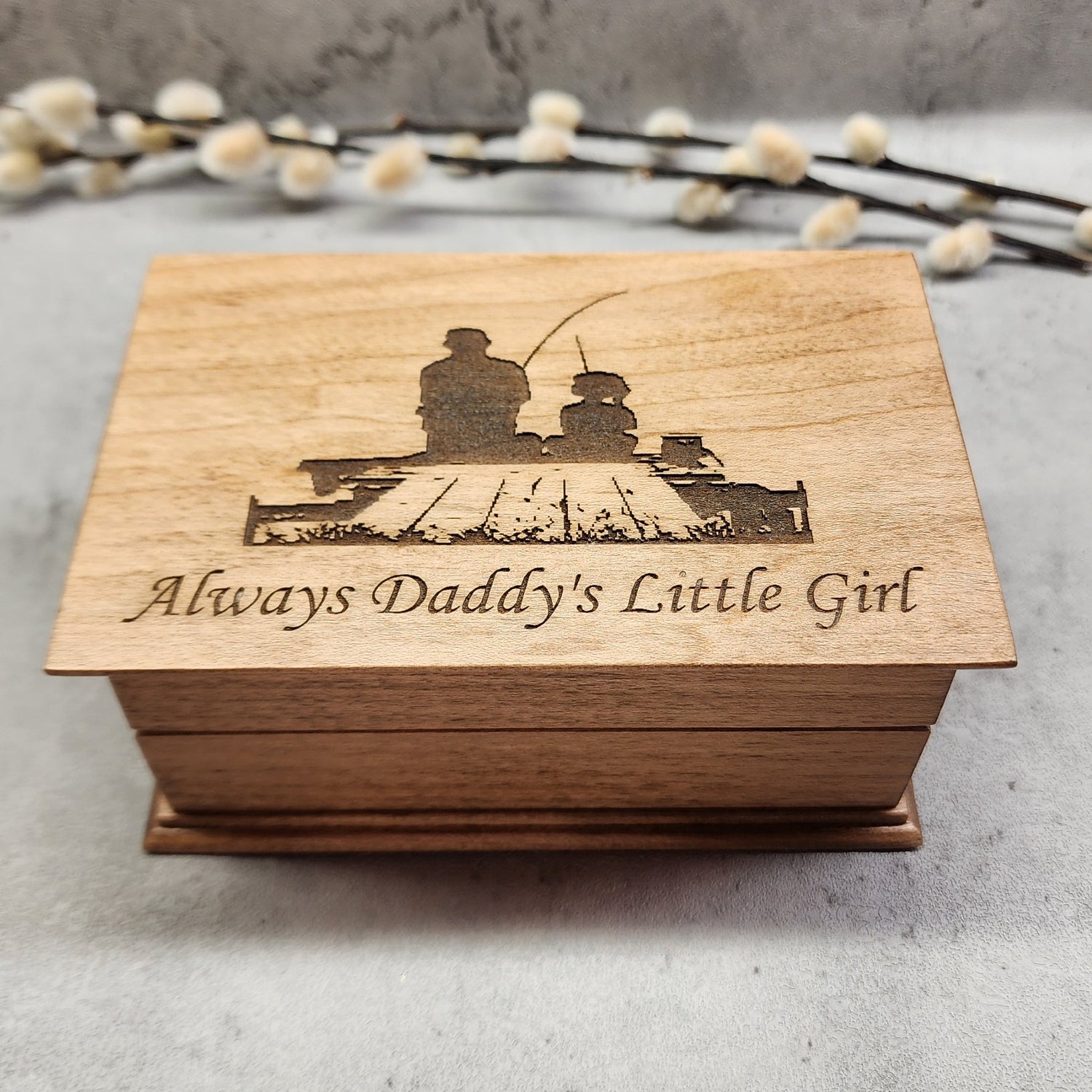 Dad and Daughter Fishing Music Jewelry Box with Always Daddy's Little Girl engraved on top