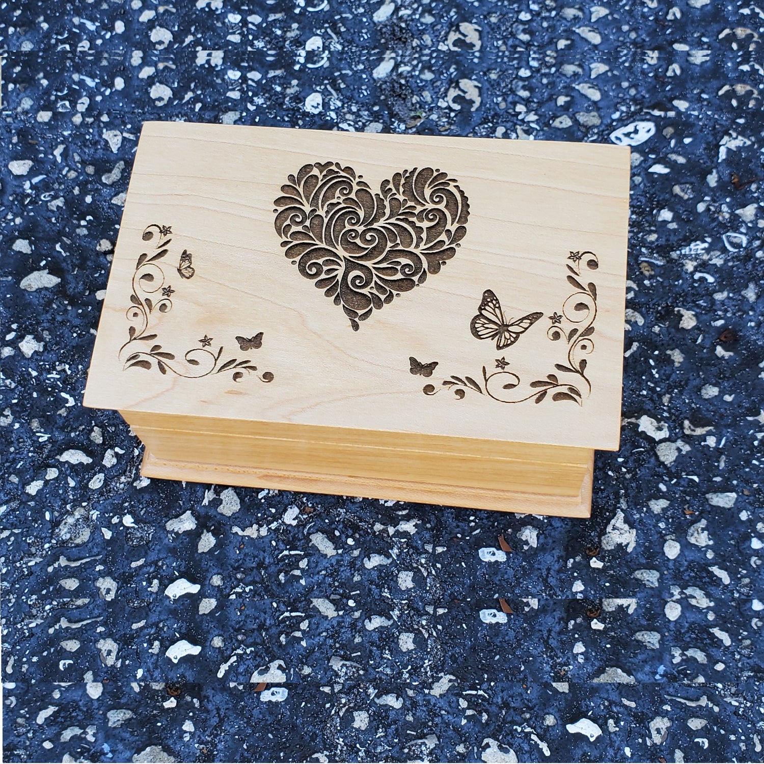 Music box with custom song is an electric music jewelry box, handmade with high quality USA maple wood and plays the music box version of your song. Just like all the traditional music boxes these ones have NO lyrics either, the music only.