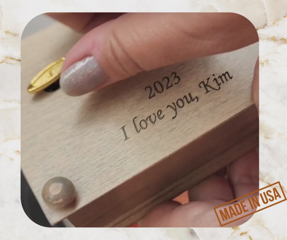 This listing includes 1 wooden musical jewelry box made of high quality USA maple wood, with the engraving on the top with your choice of color and song (from the list below)! Any further ideas, please contact me prior to purchase!