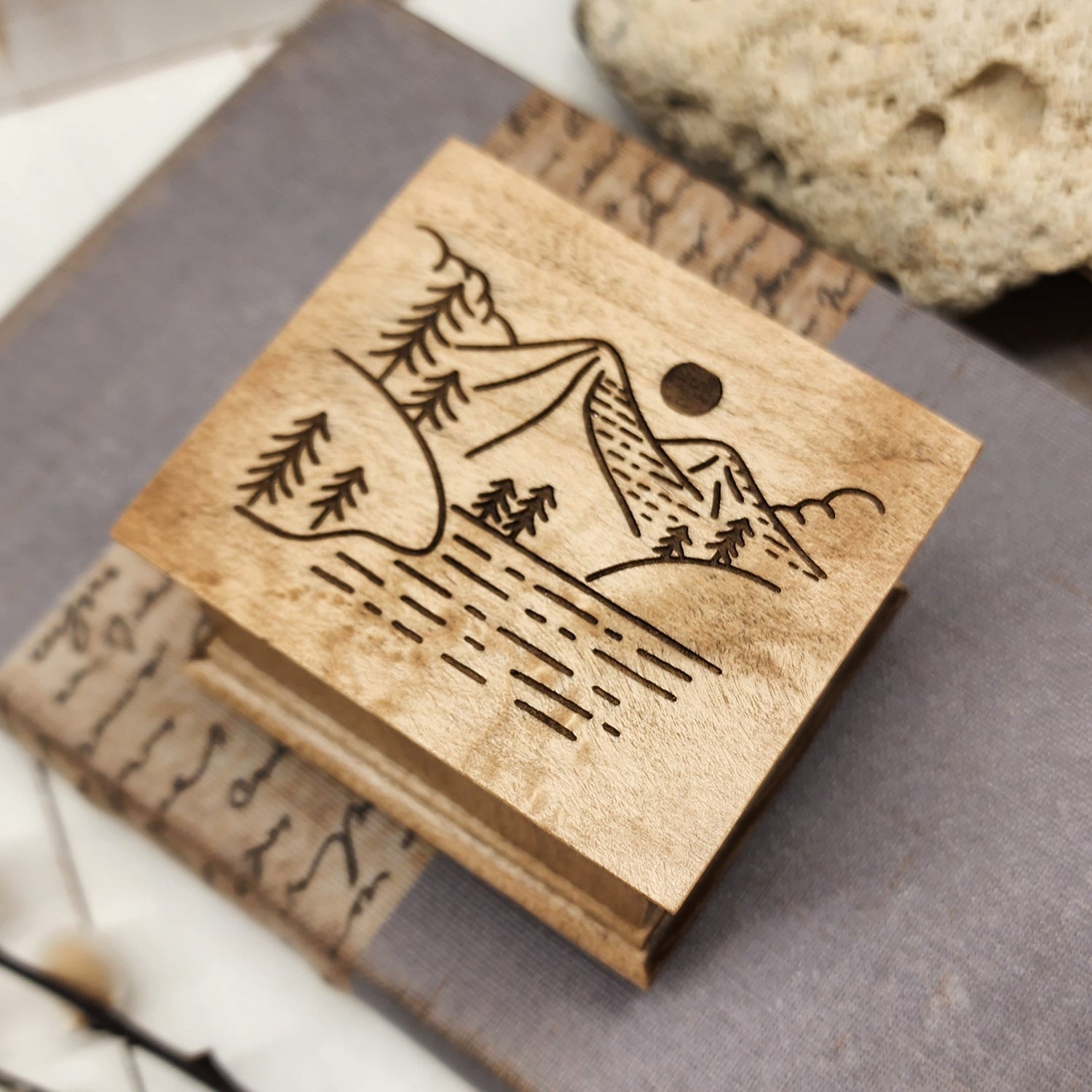 This listing includes 1 wooden music box made of high quality USA maple wood, with mountain image engraved to the top with your choice of color and song (from the list below)! Any further ideas, please contact me prior to purchase!