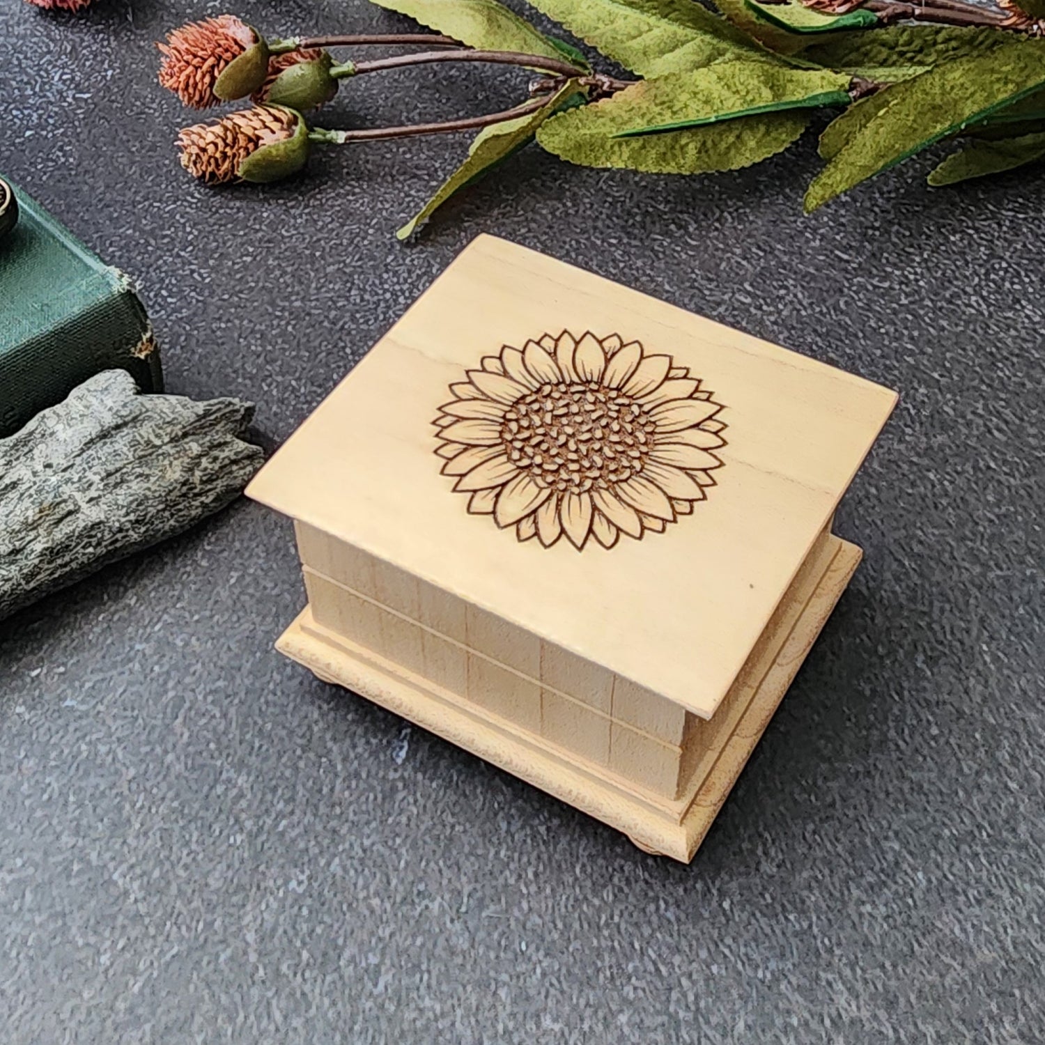 Custom Sunflower Music Box – Handmade in the USA with Engraved Lid & Optional Voice Recording
