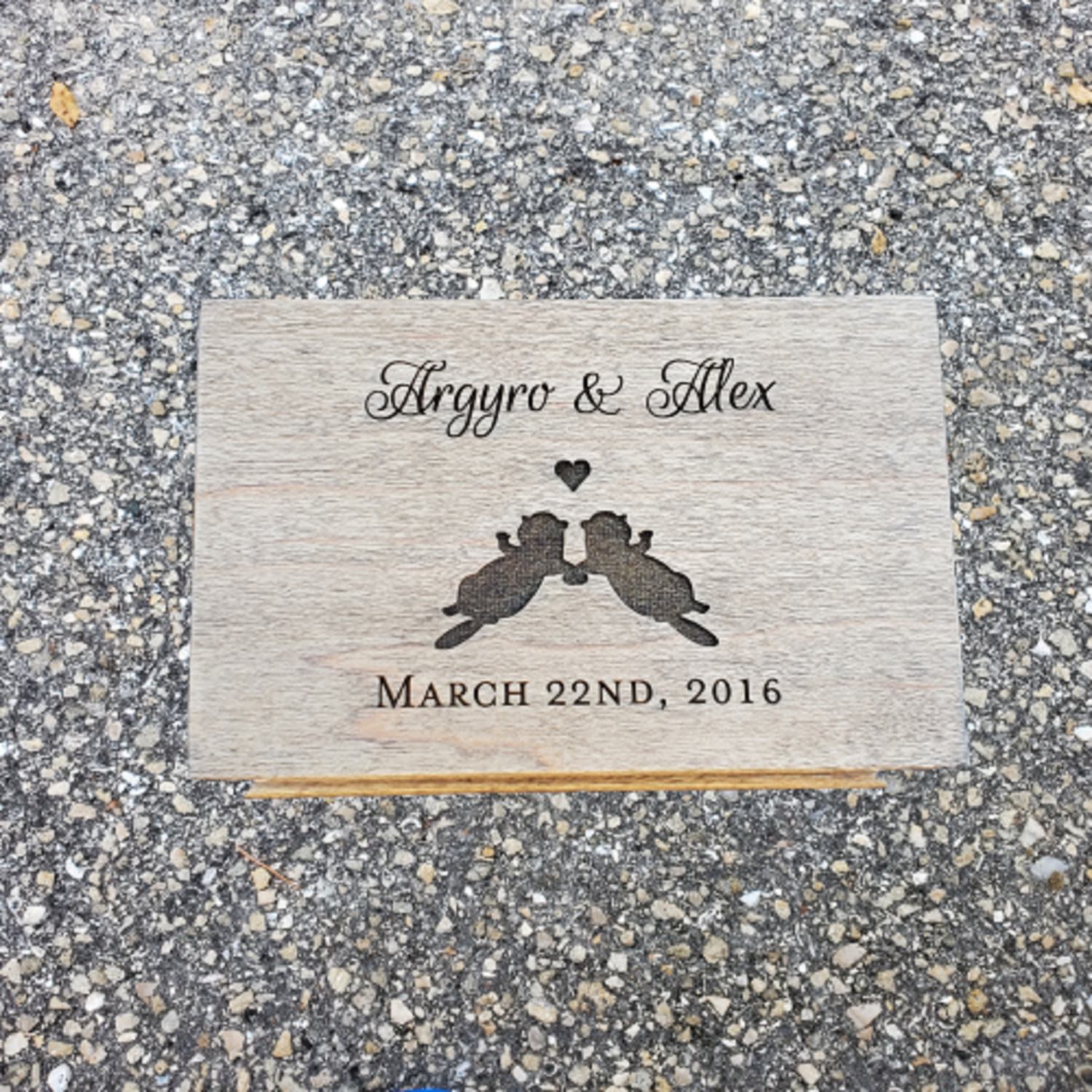 Wedding Jewelry Box with names and date with otters engraved on top, choose color and song