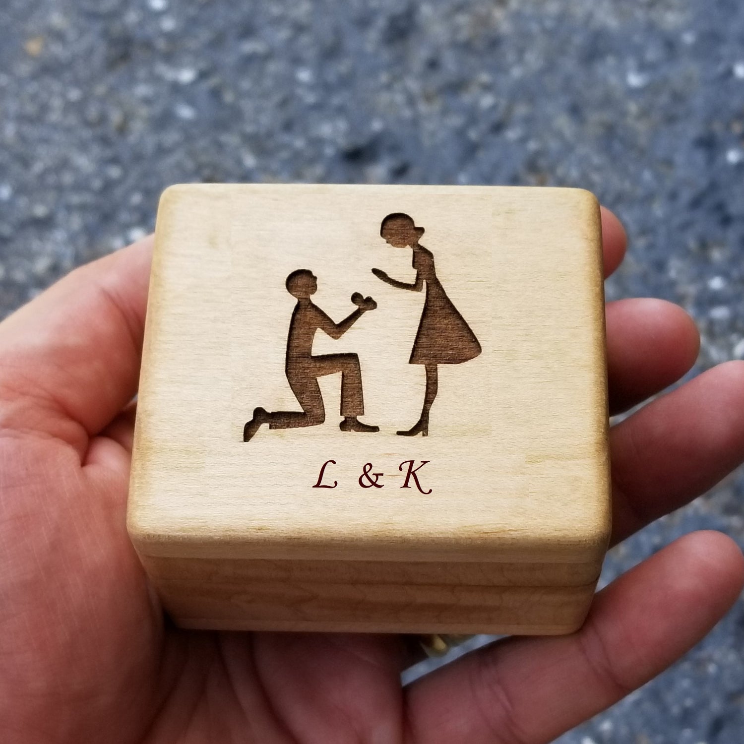 Will You Marry Me? box for rings with groom and bride engraved on top